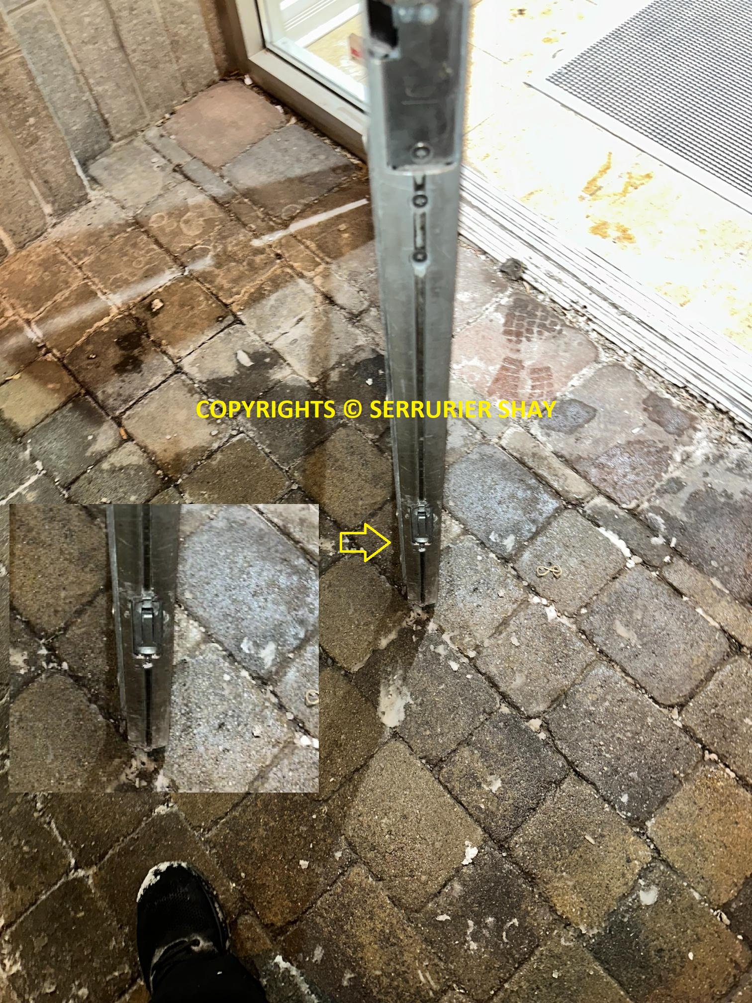 En bas, dans la gâche au sol